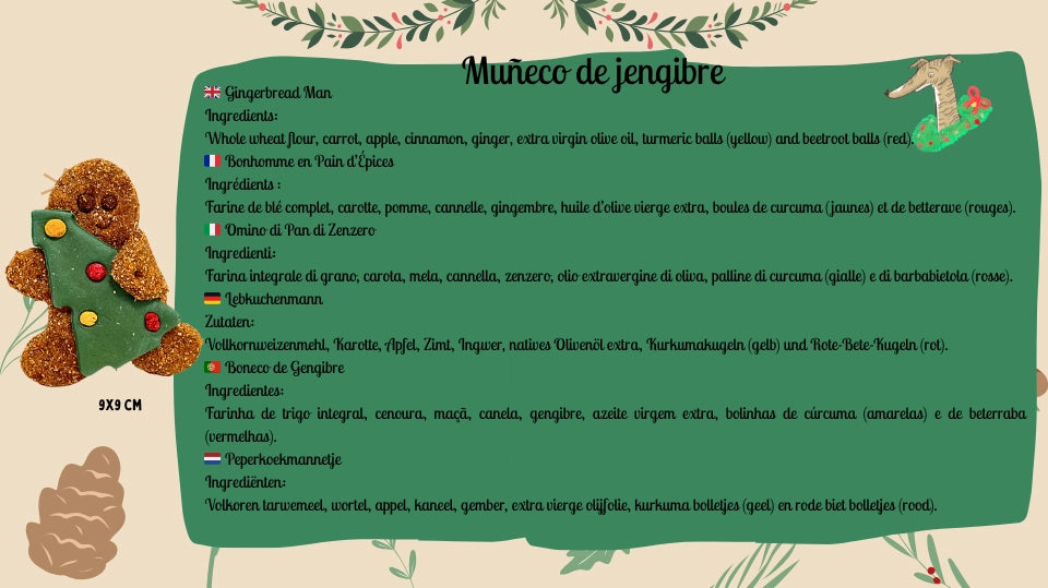 👨🍳 Bonhomme en pain d’épices – Gingembre, cannelle, pomme, carotte & curcuma : un petit clin d’œil au traditionnel gingerbread, version canine !.