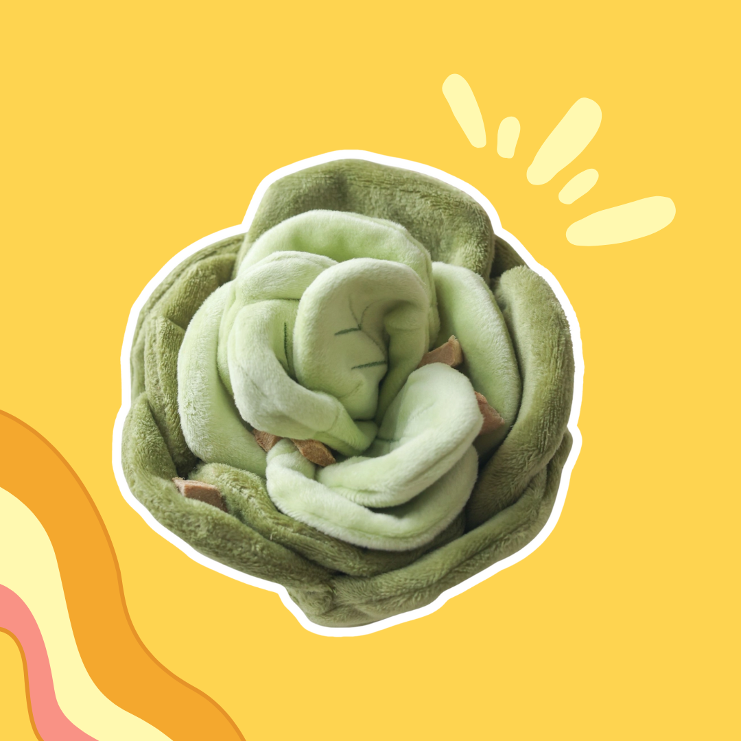 Tout droit sorti du potager (et de notre imagination !), ce chou en tissu interactif est une véritable expérience sensorielle pour les truffes curieuses. Conçu comme un bol de feuilles froissées, il invite votre chien à fouiller, gratter, sentir et réfléchir pour trouver ses friandises préférées.