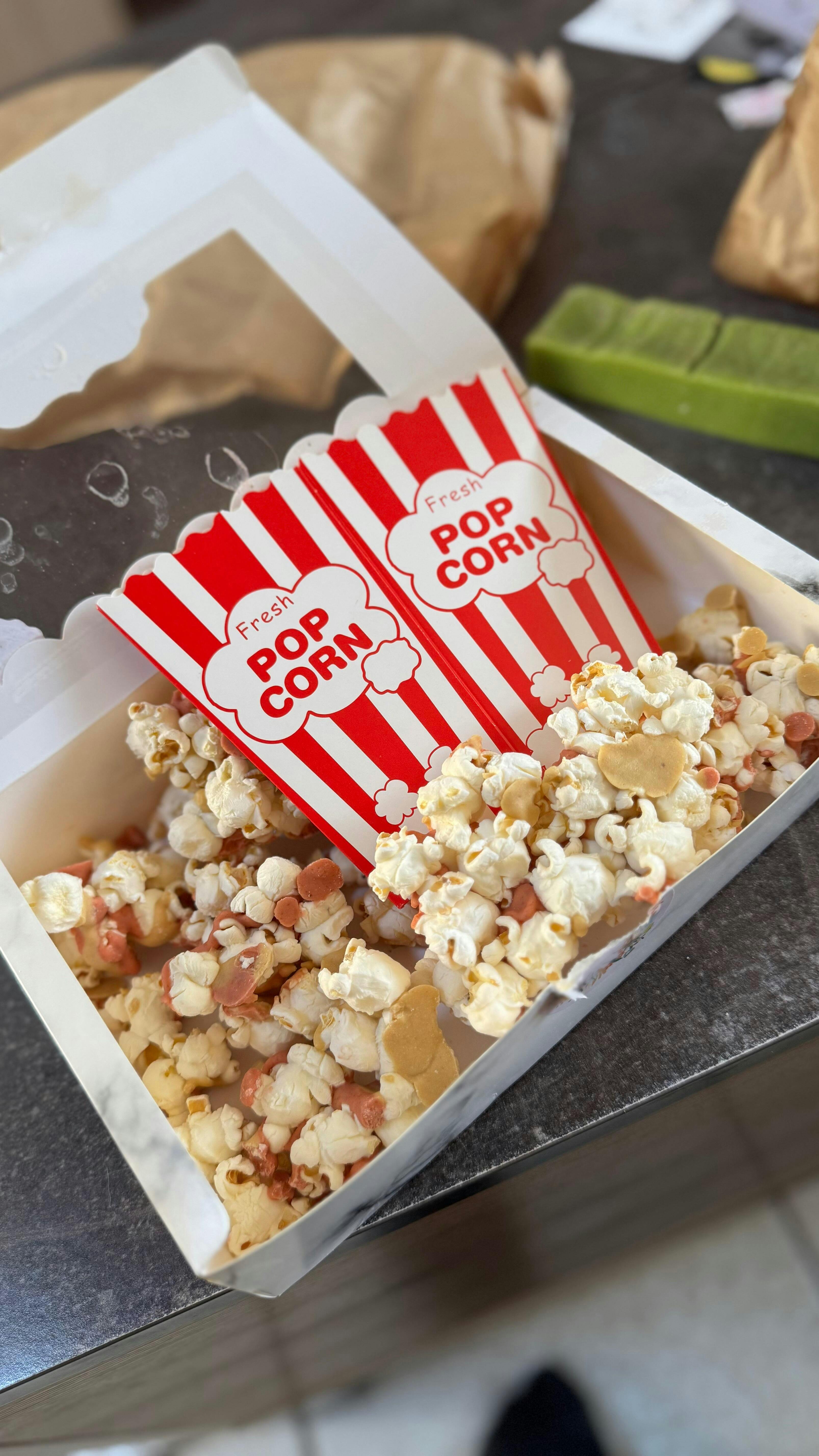 Boîte élégante de pop-corn contenant 100 g de pop-corn (poids total 115 g avec l'emballage),